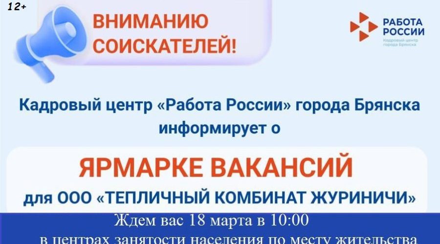 В Брянской области пройдет ярмарка вакансий ООО «Тепличный комбинат «Журиничи»