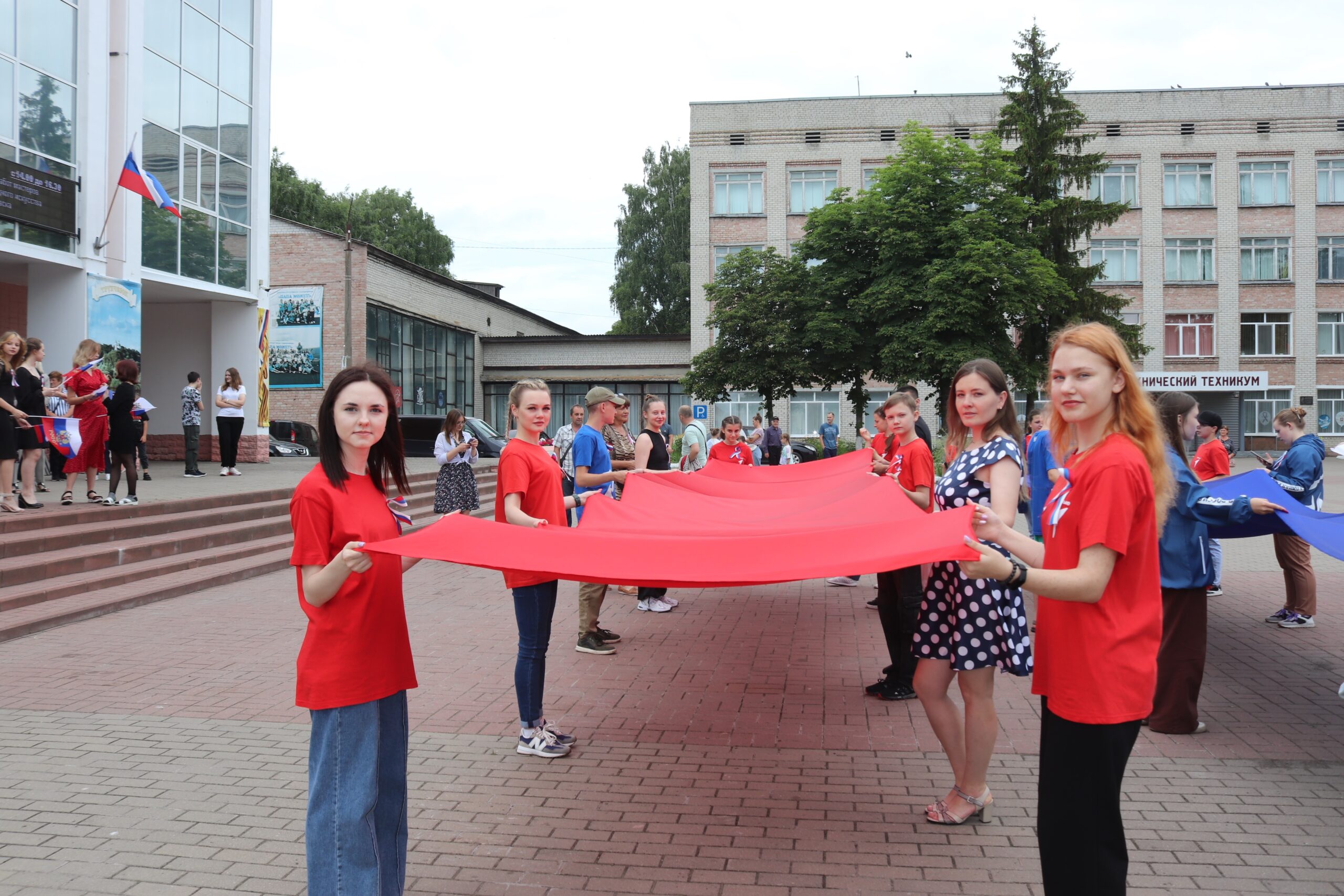 Участниками мероприятия стали и представители «Движения Первых» Трубчевского района, которые провели акцию «Флаг России», растянув на площади материи белого, синего и красного цветов в виде российского триколора, а также самодеятельные артисты РДК, жители и гости города. Все вместе они исполнили гимн России.