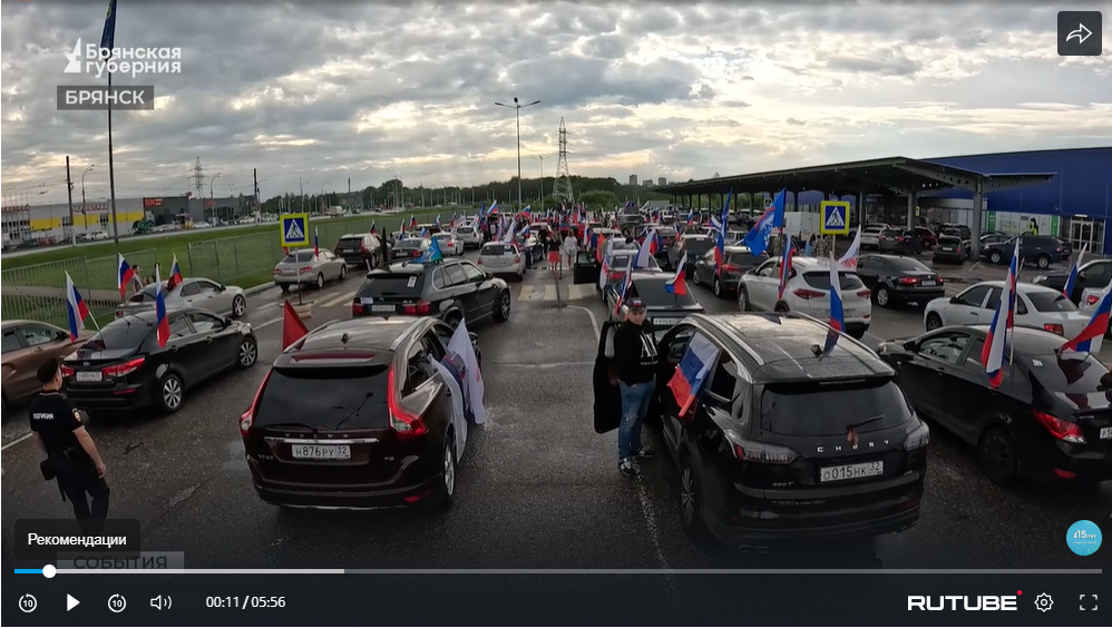 В колонне с флагами России проехали около 400 автомобилей. Колонна взяла старт от парковки к гипермаркету Metro и проследовала по проспекту Героев от Фокинского района до разворотного кольца в районе железнодорожного вокзала Брянск-I, вернувшись по новой дороге-дамбе через Славянский мост на улицу Калинина.
