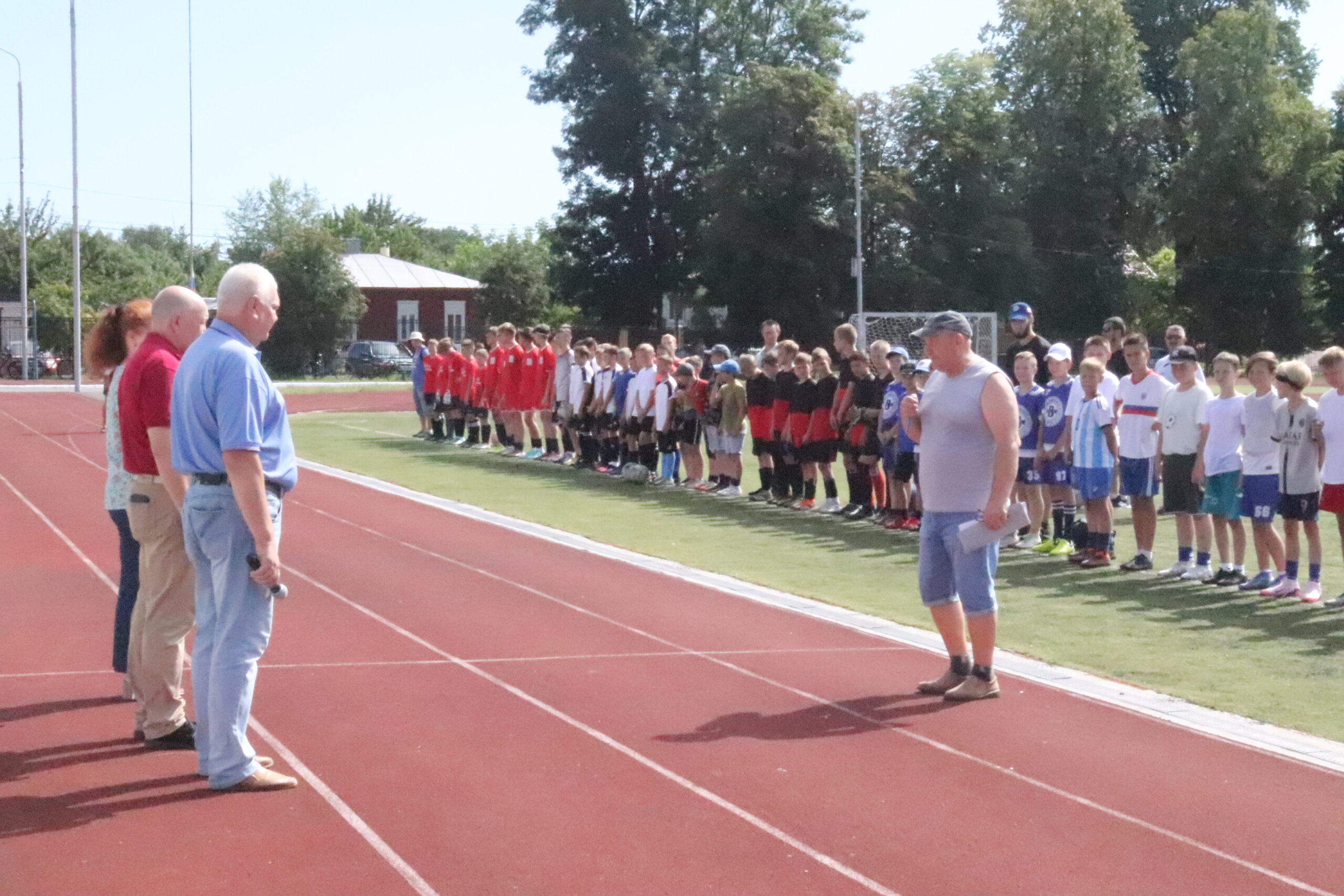 В. В. Евсеев, главный специалист райотдела культуры, ФК и архивного дела Н. И. Родькина, директор Трубчевской спортшколы О. Е. Пулин и главный судья футбольного турнира Г. П. Астапенко приветствовали выстроившиеся на футбольном поле «во фрунт» команды юных спортсменов, пожелали им спортивной удачи, красивой и честной игры, здоровья и «отличного, полезного, интересного лета», которое позволит им набраться сил к предстоящему учебному году. Василий Васильевич кратко рассказал ребятам о «Золотом медведе», а также о том, что в турнире учреждены отдельные номинации: «Лучший бомбардир», «Лучший игрок» и «Лучший вратарь» — по каждой возрастной группе. Он подчеркнул несомненную важность и полезность занятий спортом как для физического благополучия юных футболистов, так и для развития их личных качеств, характера, силы воли и умения работать в команде.
