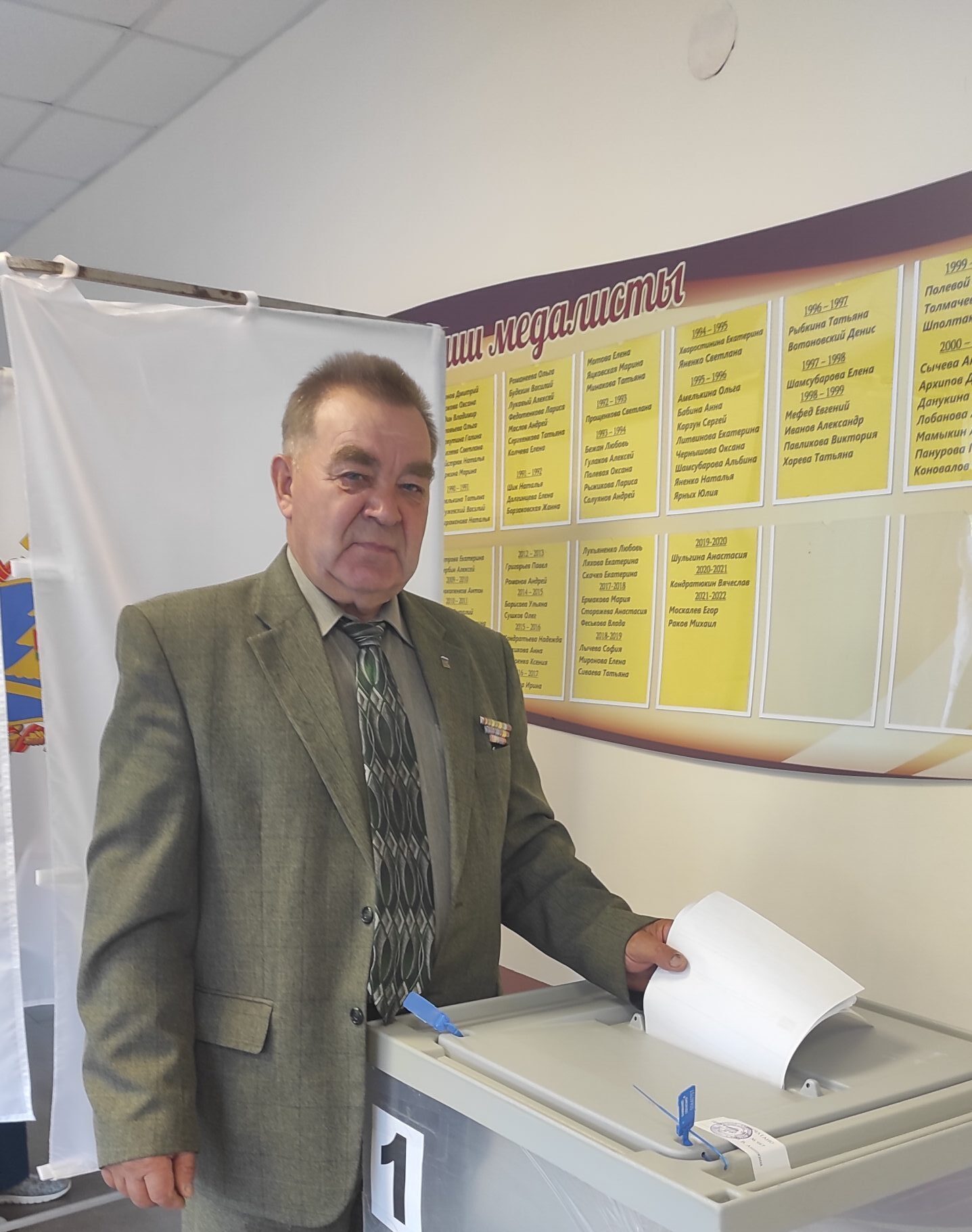 Среди тех, кто пришел на выборы в числе первых в этот утренний час, – и председатель Трубчевского райсовета ветеранов, полковник запаса М. П. Балахонов. Михаил Петрович считает важным участие в нынешних выборах. «Я представляю старшее поколение, – говорит М. П. Балахонов. – Наше поколение, родившееся через небольшое время после того, как отгремела Великая Отечественная война, с самого раннего детства усвоило, что наш главный долг — сохранить родную землю, делать все для ее мирной, благополучной, созидательной жизни и передать ее следующим поколениям. Брать на себя ответственность за будущее родного края, региона, а именно это мы делаем, когда выбираем людей, которые будут представлять наши интересы в региональном и муниципальных органах власти, – наш гражданский долг. Я сегодня его исполнил. Ни одни выборы я не пропустил. Уверен, что и мои земляки тоже проявят свою активную гражданскую позицию и придут на выборы в один из трех дней голосования».