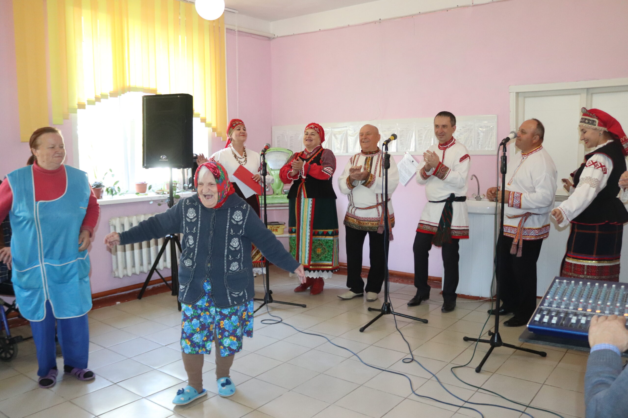 Стоит отметить, что разножанровые: лирические и шуточные, духовные и плясовые, казацкие, «пришлые» и исконно трубчевские — песни, которые исполнили артисты «Дремы» нашли живой отклик у зрителей: они аплодировали, подпевали, а частенько и пускались в пляс под веселые мелодии. Жильцы Дома-интерната и сами подготовили для гостей несколько творческих номеров: трогательно читали стихи, пели песни под гармонь и задорные частушки.