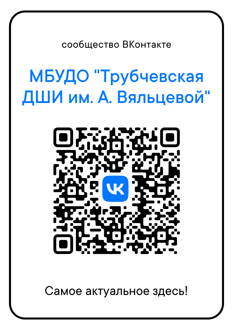 В нынешнем номере газеты мы публикуем госпаблик Трубчевской ДШИ им. А. Вяльцевой, открыть который можно, перейдя по QR-коду.