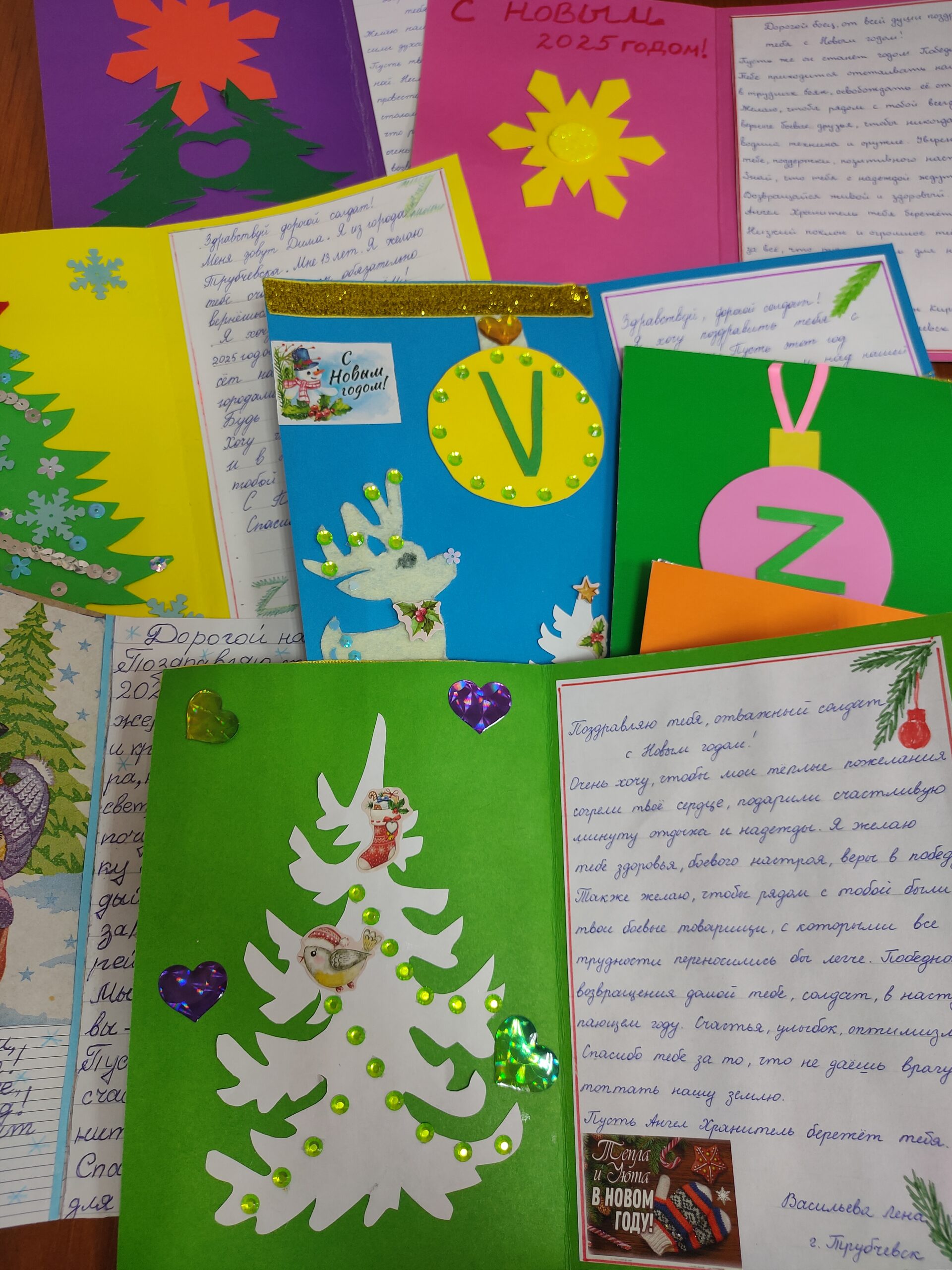 В каждой работе — пожелания мира, добра благополучия. Ребята гордятся тем, что бойцы проявляют мужество и стойкость, являются настоящими патриотами России, и от души желают им крепкого здоровья, удачи, возвращения домой с победой, чтобы рядом были верные товарищи и ангел-хранитель.