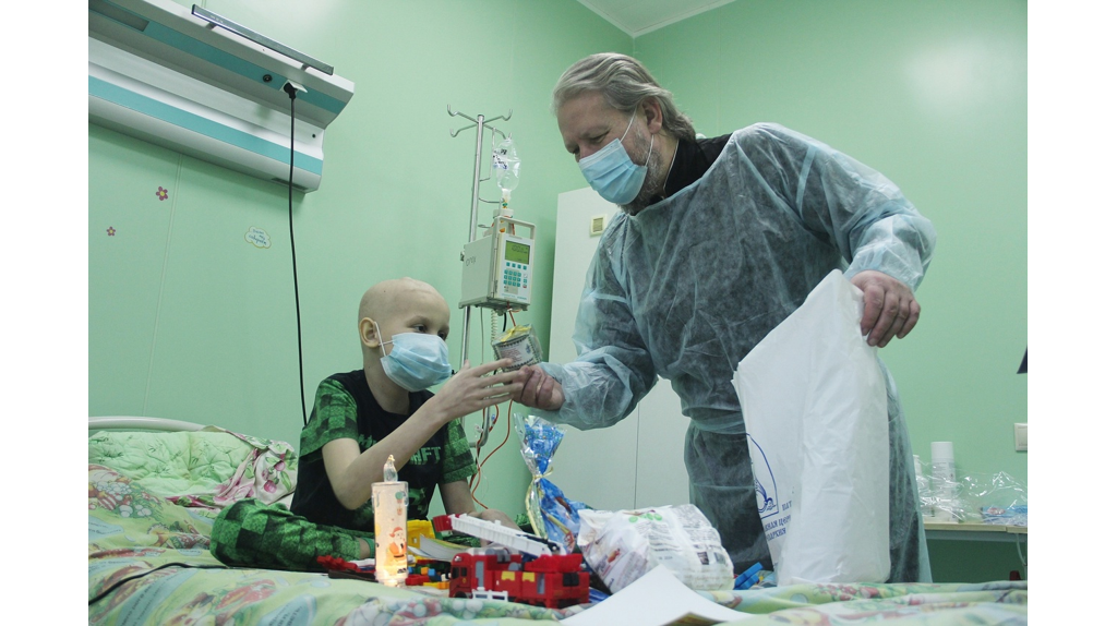 В боксы детского онкогематологического центра передали онкобольным детям искренние пожелания скорейшего выздоровления и рождественские подарки от митрополита Брянского и Севского Александра.