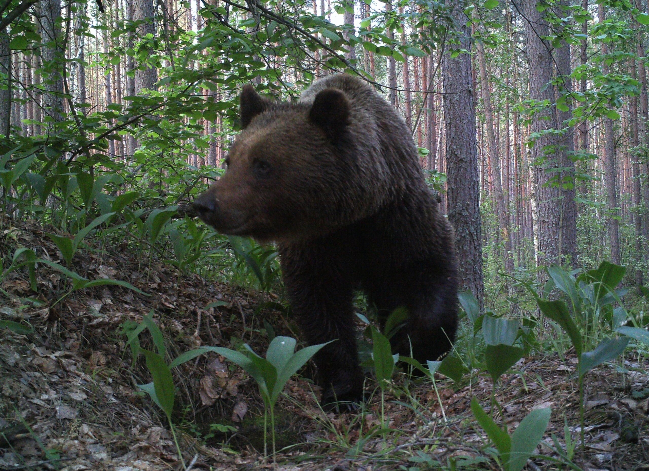 Они живут на довольно обширных по площади участках. По сути, вся территория заповедника в двенадцать тысяч гектаров – это всего один-два участка бурого медведя. Если мерить гектарами, то у крупных самцов, доминантов, которые являются основными производителями на этой территории, есть свой индивидуальный участок, который они в течение года проходят, осваивают. Такой участок может занимать от пяти до десяти тысяч гектаров. А вот самке с медвежатами достаточно трех-пяти тысяч гектаров. Дело в том, что у бурых медведей все участки перекрываются: внутри участка самца-доминанта может жить несколько самок, как с медвежатами, так и холостых, еще молодых. По краям могут примыкать и участки молодых самцов, которые вглубь не заходят. Всех этих медведей я условно называю «нашими», заповедническими. Причем плотность медведя держится на оптимальном уровне, и она таковой будет оставаться. Другие, как бы «лишние», медведи постоянно уходят куда-то дальше. В последнее время в Калужской области встречаются медведи, в Тульской. Я допускаю, что они в том числе и из наших брянских лесов.
