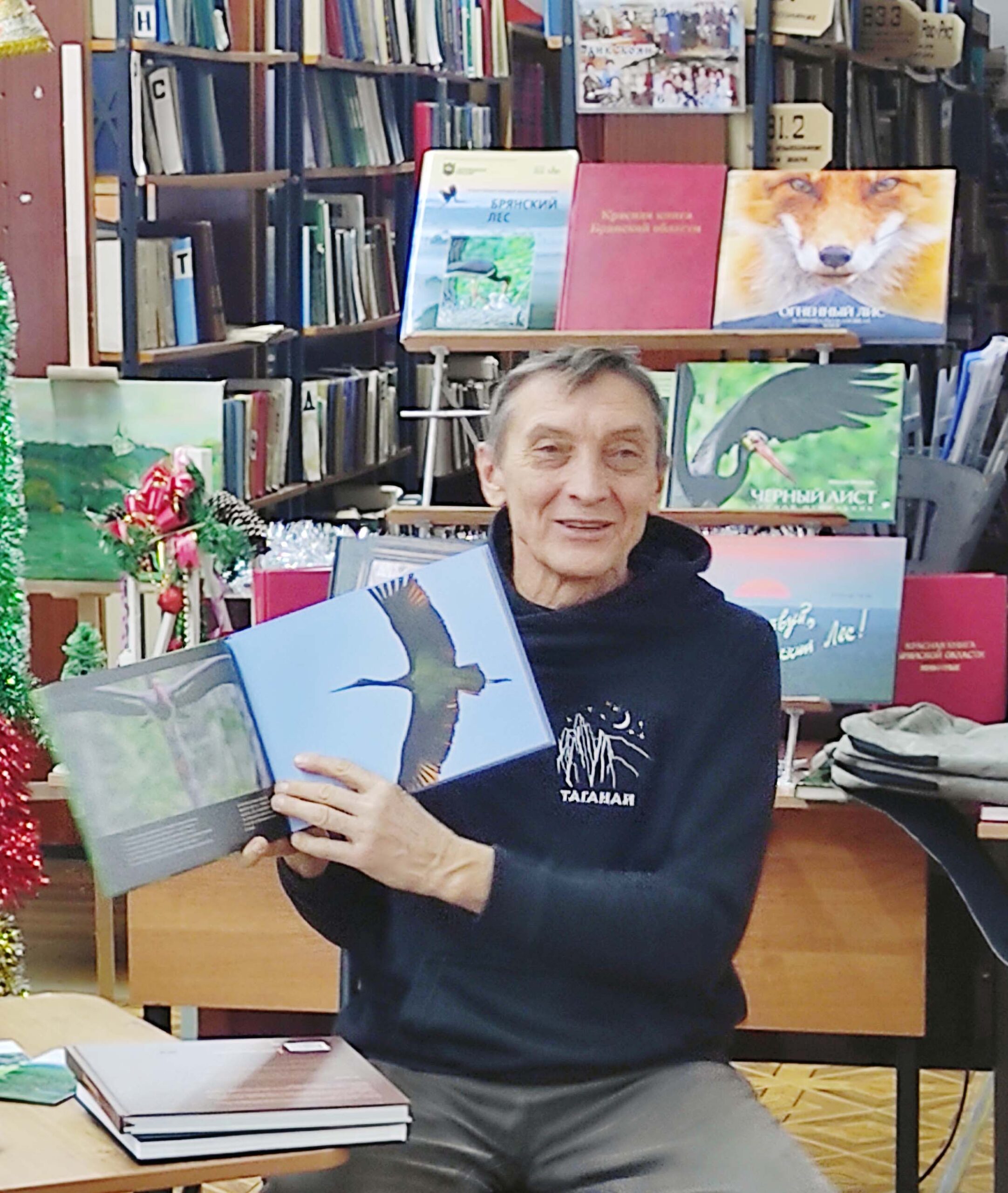 В конце прошлого года в читальном зале Трубчевской центральной библиотеки прошло интересное мероприятие: в гости к трубчанам по приглашению директора библиотеки С. Н. Тубол приехал известный не только в нашем регионе, не только в России, но и во всем мире фотограф-натуралист, основатель и первый директор заповедника «Брянский лес», автор многочисленных фотокниг о дикой природе, сотрудник государственной природоохраны, с 2014 года – член Международной лиги природоохранных фотографов и прочее, прочее, прочее И. П. Шпиленок.