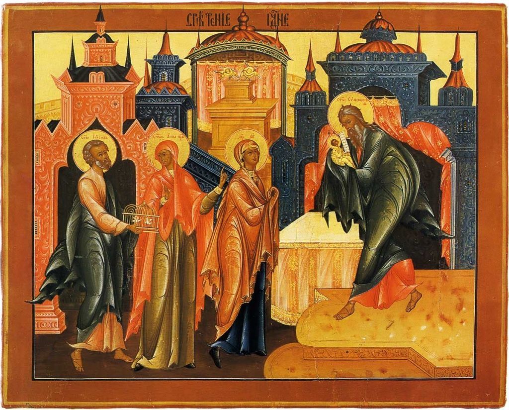 У Сретения неизменное место в церковном календаре – 15 февраля. Он установлен в память о встрече, описанной в Евангелии от Луки. А произошла она на 40-й день после Рождества Христова, когда Дева Мария и праведный Иосиф Обручник принесли младенца Христа в Иерусалимский храм, чтобы посвятить его Богу. Они принесли и жертву – двух горлиц. В храме их встретили праведный старец Симеон и пророчица Анна.