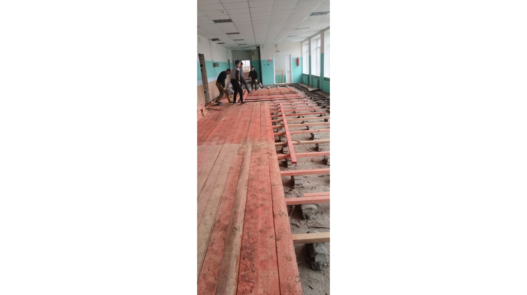 В настоящее время идут демонтажные работы в пищеблоке, готовятся к прокладке труб канализационной системы, осуществляется монтаж электроснабжения и полов на втором этаже.