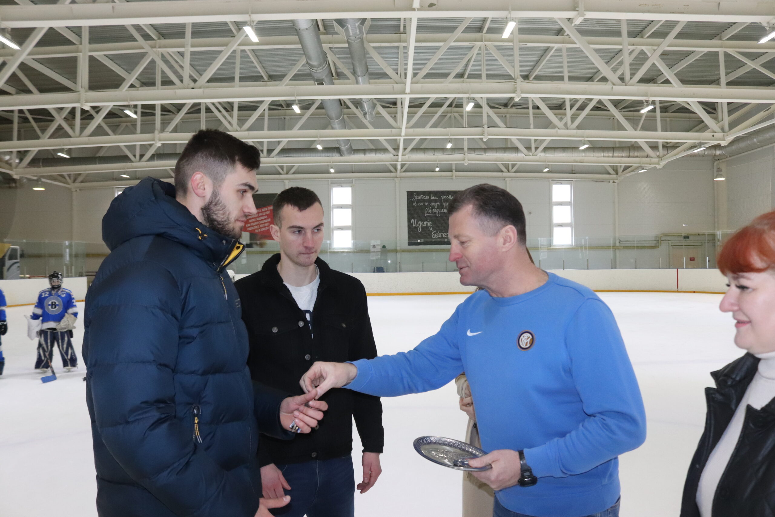 Сегодня, 12 апреля, на ледовой арене ФОКа «Вымпел» прошло торжественное мероприятие: в рамках исполнения регионального проекта «Обеспечение спортивных организаций квалифицированными кадрами» госпрограммы «Развитие физической культуры и спорта» глава райадминистрации Трубчевского района Игорь Обыденнов вручил ключи от квартир двум тренерам-преподавателям по хоккею «Вымпела» — Игорю Маслову и Денису Самусеву.