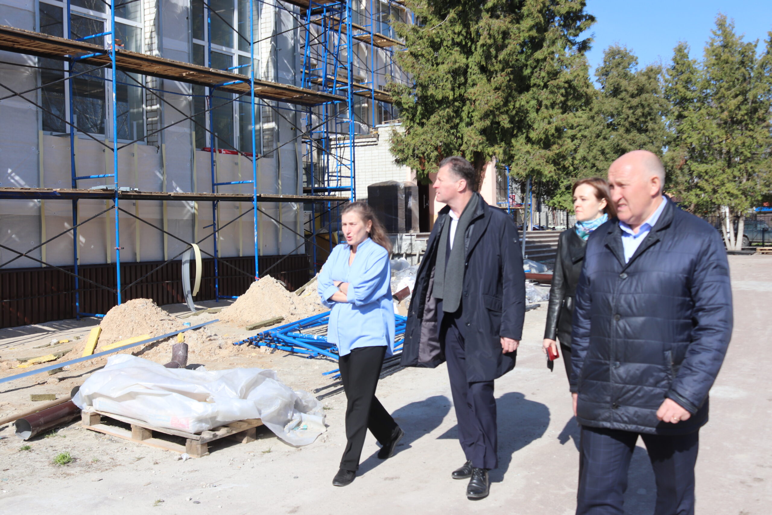 Руководители Трубчевского района в рамках традиционного еженедельного посещения крупных строительных объектов города 16 апреля побывали на трех самых больших на текущий момент социально-значимых стройки Трубчевска: поликлинику Трубчевской ЦРБ и городскую СОШ №1, в которых сейчас рабочие ООО «ТЕХИНФОРМ-СТРОЙ» (гендир. – С. Непорада) завершают капитальный ремонт, и стройплощадку будущего ФОКа с бассейном – на ул. Заводской, где трудятся рабочие ООО «Стройдело» (дир. – М. Кабанов).