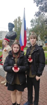 В завершение митинга его участники почтили память погибших героев Минутой молчания. К бюсту А. И. Еременко возложили венок и цветы.