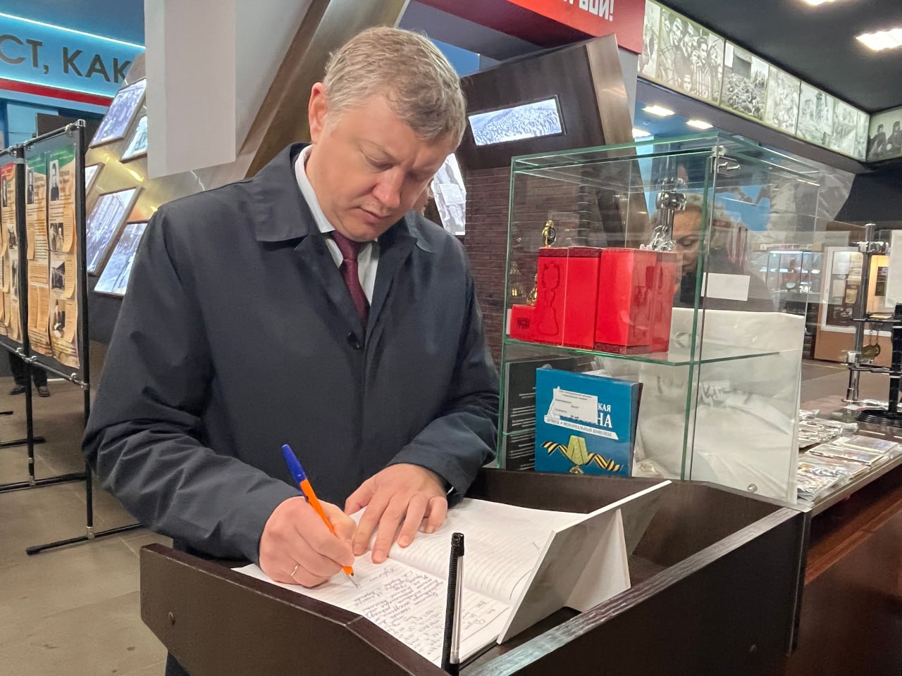 Евгений Владимирович оставил запись в книге почетных гостей, отметив, что хранить память о подвигах наших предков — важнейшая задача, особенно в нынешнее время.