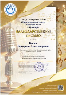 По информации Белоберезковского Дома культуры, по итогам конкурса Ульяна была отмечена Дипломом лауреата I степени, а ее преподаватель, Екатерина Александровна Букась, — Благодарственным письмом конкурса «За педагогический талант и кропотливый труд в воспитании и обучении подрастающего поколения».