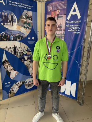 27 марта 2026 года на базе Брянского строительно-технологического техникума им. Л. Я. Кучеева во время торжественной церемонии закрытия регионального этапа «Абилимпикса» юноше вручили заслуженные награды: диплом победителя и медаль за первое место.