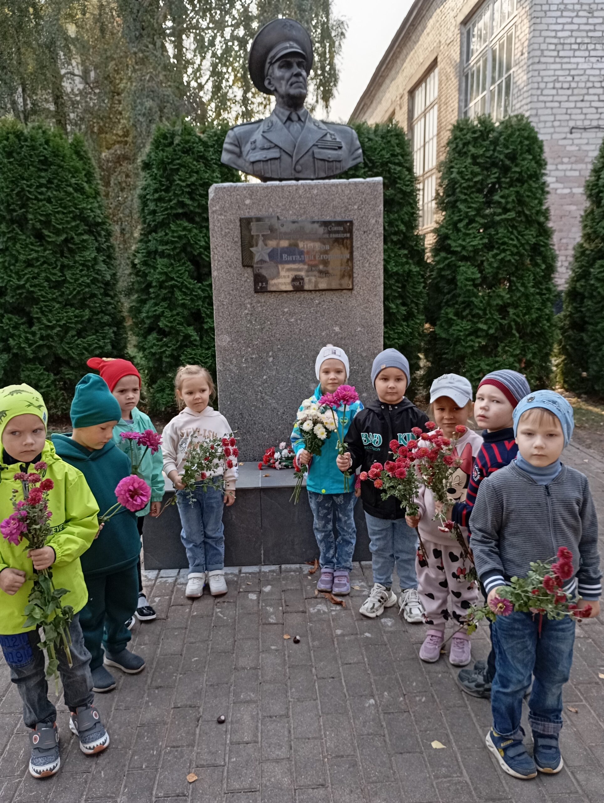 В ходе этой работы дети старшей группы «Почемучки» посетили Аллею Героев. Этот памятник – символ патриотизма и воинского духа трубчан. Они узнали о Героях Советского Союза — их земляках, доблестно защищавших страну от врагов в годы Великой Отечественной войны. Ребята возложили цветы к бюсту Героя Советского Союза генерал-полковника В. Е. Павлова, нашего земляка, который защищал нашу Родину, участвуя в Афганской войне. Соприкосновение с историческим прошлым нашего края духовно обогащает детей, воспитывает интерес к его культуре, обычаям, традициям. А это сегодня очень важно! Яркие впечатления об истории родной земли, о родной природе, полученные в детстве, останутся в памяти ребенка на всю жизнь.