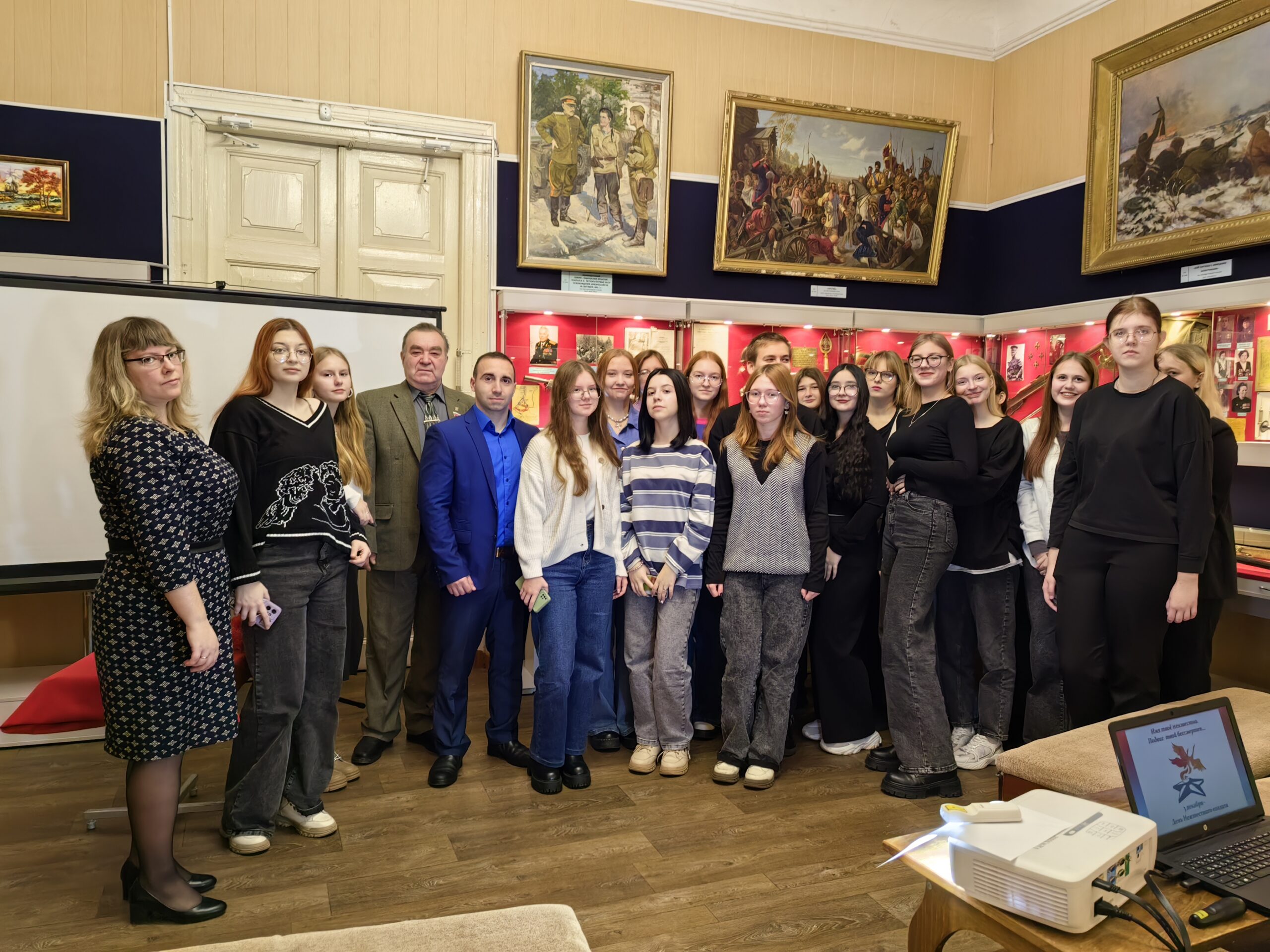 В этот день в Трубчевском музее и планетарии прошел Урок мужества, в котором приняли участие председатель райсовета ветеранов М. П. Балахонов и студенты Трубчевского педколледжа.