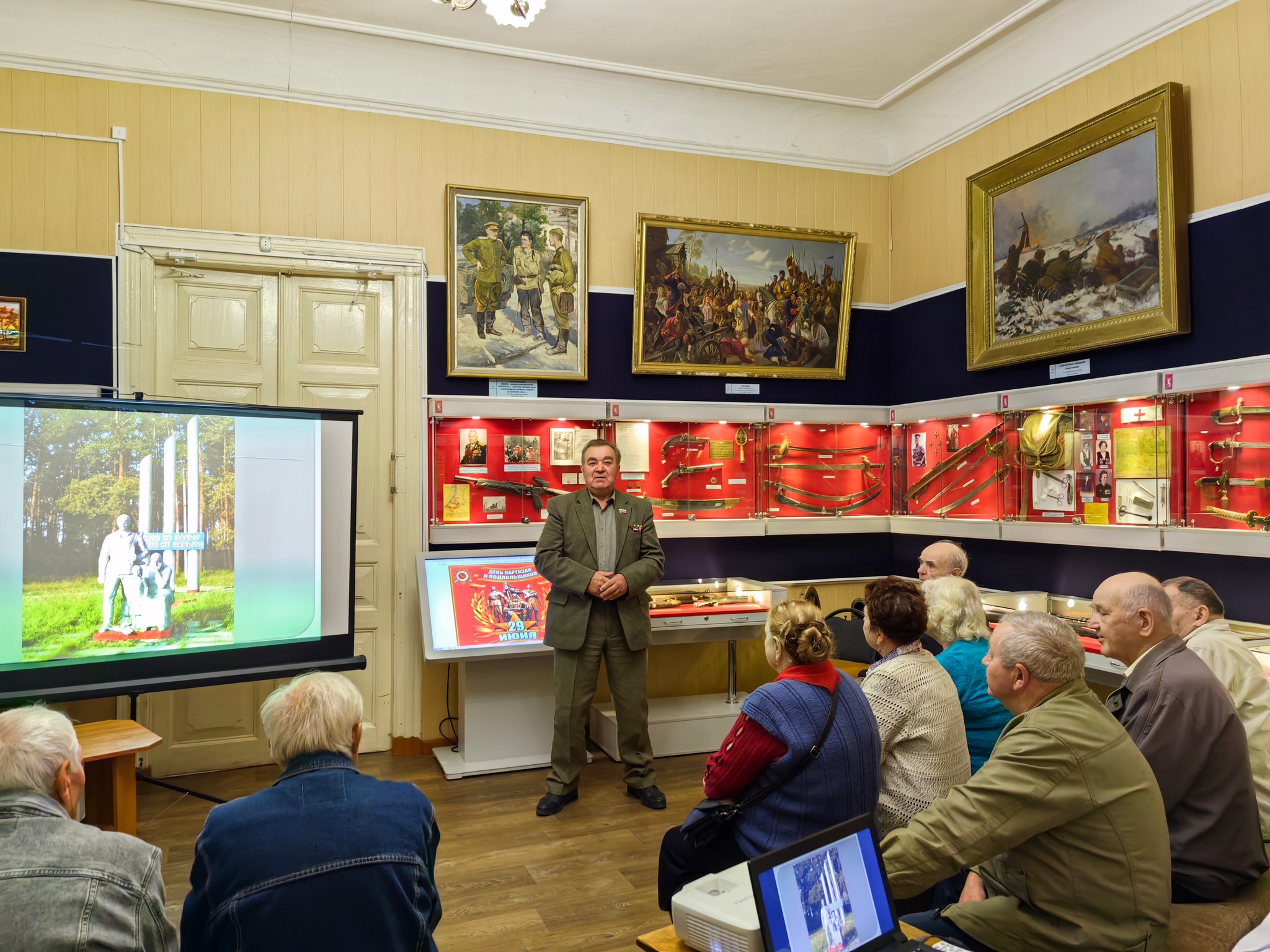 В зале Воинской славы Трубчевского музея прошел патриотический час «Уходили в поход партизаны», посвященный этой знаменательной дате. Его ведущая – научный сотрудник И. С. Лопаткина — показала собравшимся презентацию о партизанском движении, где были затронуты такие аспекты, как причины возникновения партизанских движений, их стратегия и тактика, влияние на ход истории.