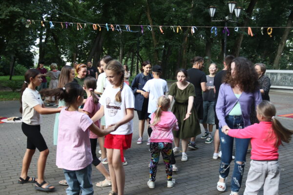 Маленькие и взрослые посетители парка: те, что пришли сюда целенаправленно — на вечерку, и те, что случайно заглянули «на огонек», — провели этот вечер на площадке у памятника Бояну весело, интересно и с пользой для тела и для души.
