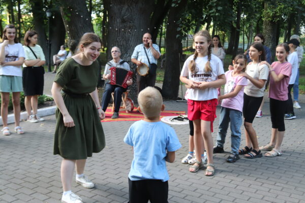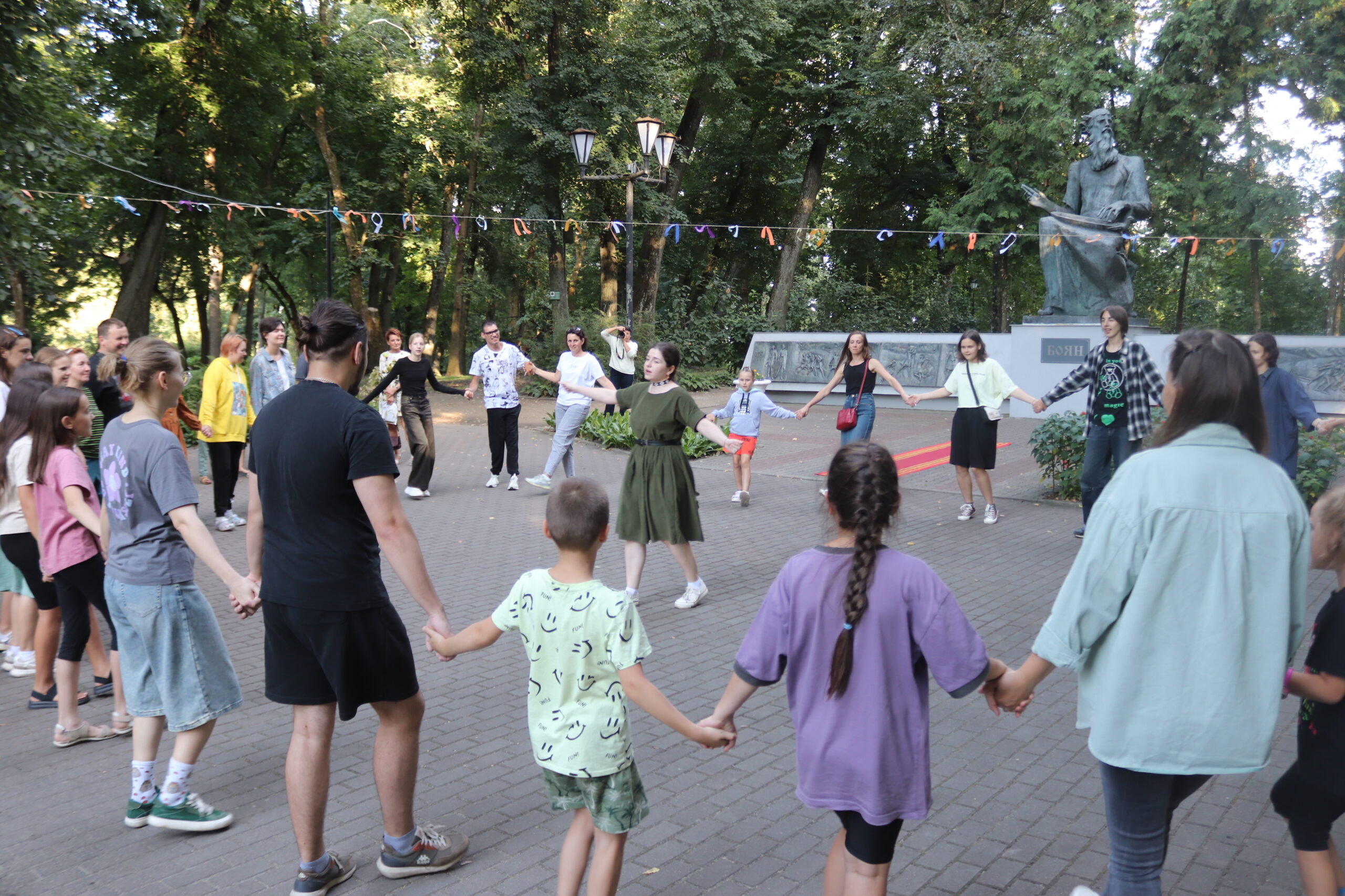 Маленькие и взрослые посетители парка: те, что пришли сюда целенаправленно — на вечерку, и те, что случайно заглянули «на огонек», — провели этот вечер на площадке у памятника Бояну весело, интересно и с пользой для тела и для души.